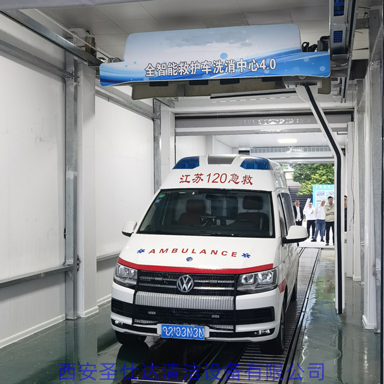 西安圣仕达清洁设备的救护车消杀清洗设备,全自动无接触清洗救护车,救护车消杀站,车辆洗消系统自动开启无接触清洗装置,对车辆四周及顶部进行清洗,车辆底部前后往复履带多喷头清洗,清洗完成后系统自动停止工作,并开启高压雾化消毒系统,对车辆进行无死角全面消毒,消毒时间大约3到5分钟。车辆消毒系统会按时自动停止运行,同时人员消毒完成,可以将清洁的车辆驶离洗消中心,消毒完成
