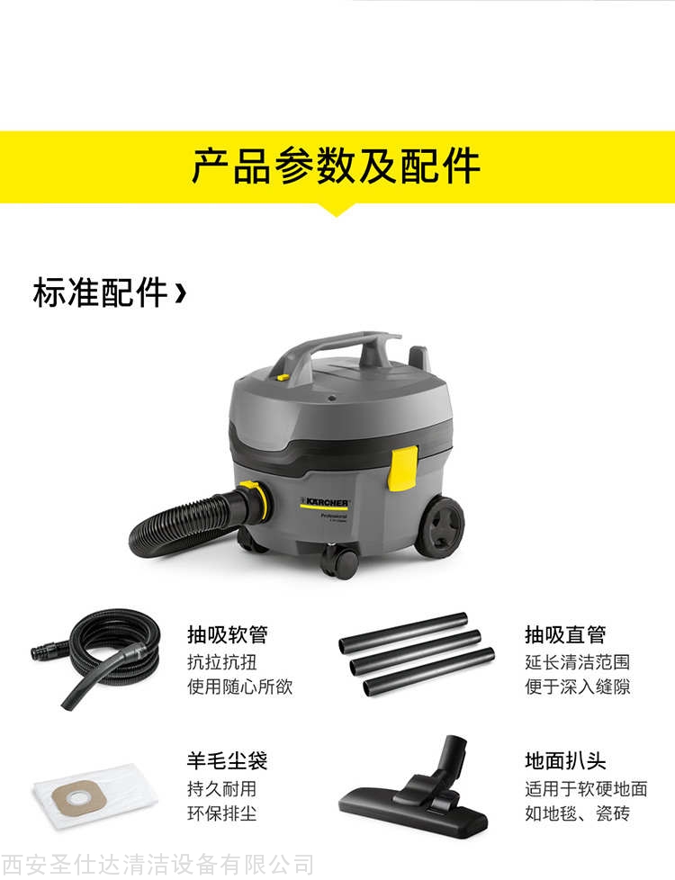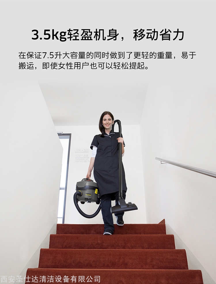凯驰干式真空吸尘器T 7/1商用经济型真空吸尘器,配备羊毛纤维尘袋、可水洗过滤网格、电线存放槽,经济耐用,维护成本低廉,性价比极高,适合小型酒店批量使用。