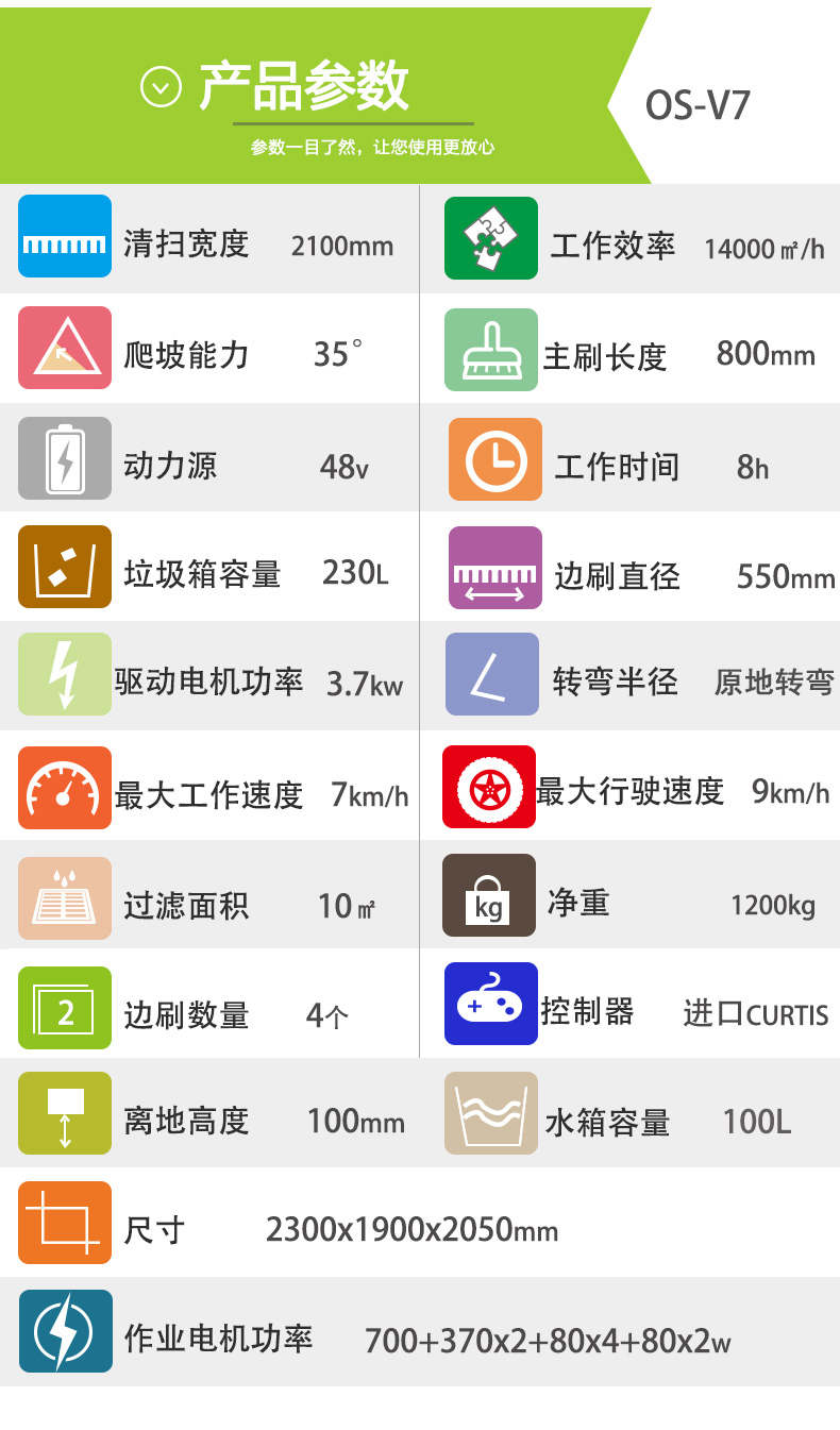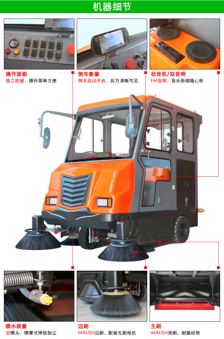 OS-V7全封闭大型驾驶式扫地车 奥科奇又一成功力作,是我司款全封闭电动扫地车,运用技术设计制造和大量采用零部件。封闭式的驾驶舱使该车特别适合在寒冷、雨水风沙大等恶劣的环境下使用,被应用于市政道路、物业保洁、大型厂区和各类景区园区的开阔户外地面的作业中!