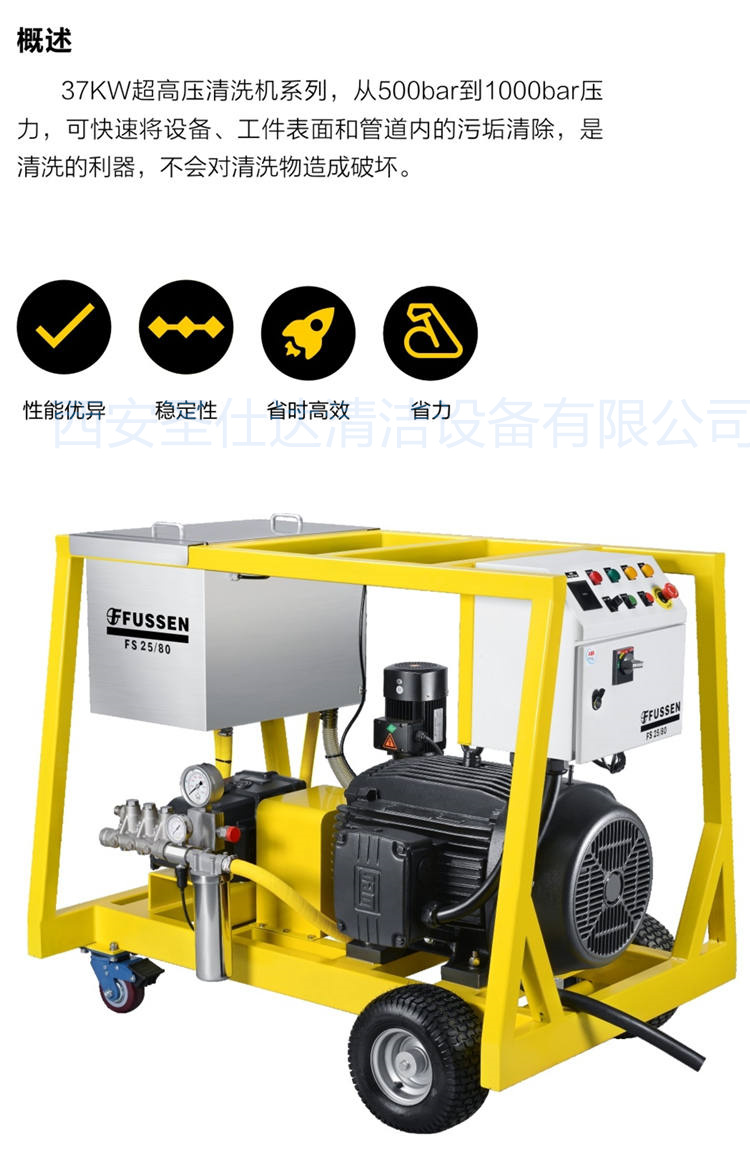 FS20/100 37KW超高压清洗机系列,1000bar压力,可快速将设备、工件表面和管道内的污垢清除,是清洗的利器,不会对清洗物造成破坏。FS20/100 37KW是清洗设备的理想选择。